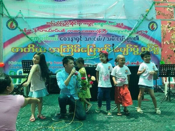 今年3月15日,仰光Helbin儿童医院特为慢性肾脏病住院儿童举办了“第三届游园活动”。许多善男信女与热心公益人士踊跃参加;家喻户晓的东枝歌手兼影视明星Sai Sai Kham Leng大慈大悲,他带着一群天真无邪的粉丝儿童,为这些慢性肾脏病住院儿童充满爱心地慰问、义务献唱与演歌舞。
