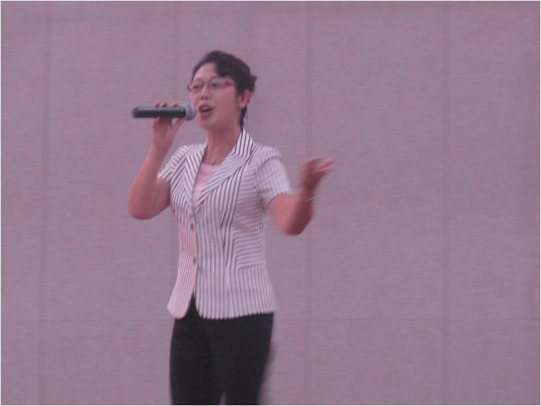 正当中年有为,风华端庄的童书记是本次大会一个亮点。无论是开幕致词,还是现场应邀即兴演唱,她展现出的随和亲民,多才多艺的形象,给大家留下深刻的印象。她的致词,简短热情,她独唱的云南民歌《绣荷包》,以及和本次联欢会主持李瑞武先生对唱的蒙古民歌《敖包相会》,嗓音婉转清丽,散发着一股云南红土高原的泥土芳香味,和李瑞武的嘹亮高亢的歌喉可谓各有千秋,引来阵阵热烈的掌声。