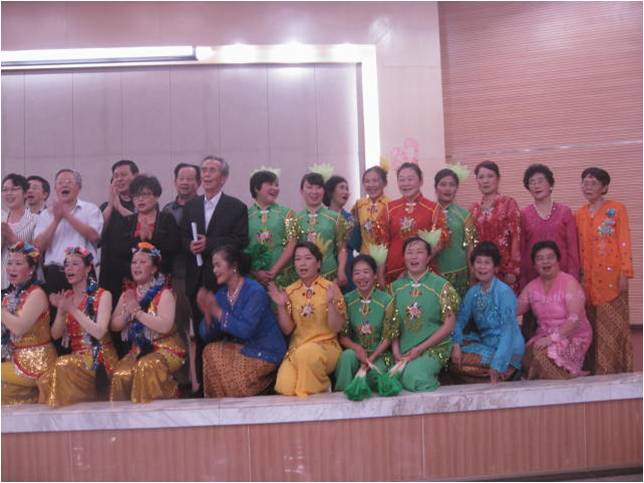 印尼归侨侨眷联谊会跳《爪哇风情》的演员,都是70左右的老头老太太,可那活泼欢快的印尼民歌一响,身着印尼服装的他们,照样身手不凡,跳得十分投入,沉醉,仿佛又回到生养他们的,有椰树、沙滩、海水的千岛之国。更令人惊叹不已的是他们的二代子女表演的舞蹈《荷塘月色》,八位荷花仙子,在凤凰传奇既优美又现代的歌声中,翩翩出水,踏浪而来,引来现场不少摄影发烧友端起长枪短炮,噼噼啪啪一阵狂照。如今能够组织侨二代上台表演的,除了南侨机工,就是印尼了,不简单!值得其他团体学习。