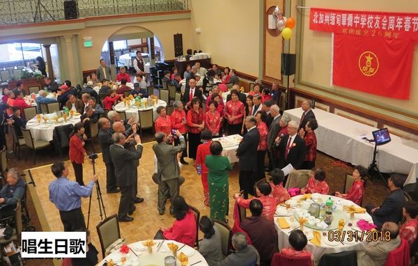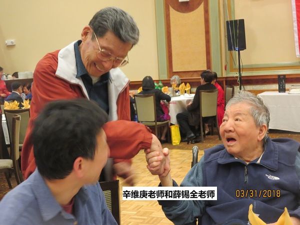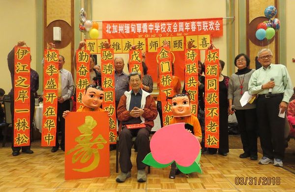 2018年3月31日,南三藩市福源酒家灯火辉煌,喜气洋溢。北加华友庆祝校友会成立26周年暨欢庆辛维庚老师百岁华诞。南加华友雀跃万分, 组织了50人的团队前来助兴。已步入老年的华中校友们又欢聚一堂,个个两鬓花白但笑容可掬,年岁虽高,心态不老。期颐之年的辛老师老当益壮,头发浓密,腰板挺直,耳明目清,和我们这一群学生聚在一起,完全显不出他是我们的老一辈。