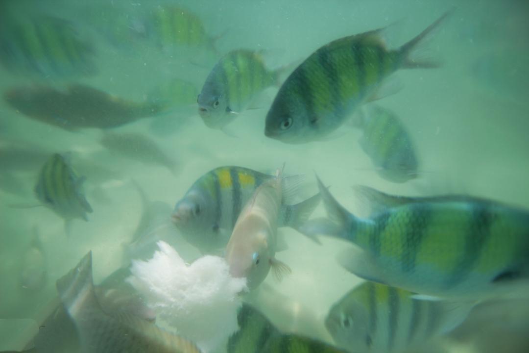 我们一边漫步一边用面包喂鱼,鱼儿并不怕人,在我们手上抢面包吃,啄得手指头痒痒的。在透视镜中看到自己的同伴,互相微笑打招呼、做鬼脸,做些稿笑动作,乐不可支,就这样在鱼儿海藻的陪伴下走了一大圈。
