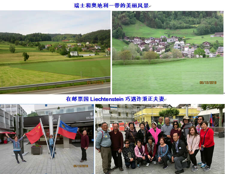 从阿尔卑斯山下来往奥地利走,此时一路风景都很美,从以下相片可见一斑。下午经过小国列支敦士坦 Liechtenstein 时,巧遇许秉正夫妇也跟着其他旅行团来到这里,大家欢乐地一起拍照留念。