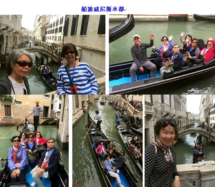 5-15-2018,离开奥地利,驅车523km 前往意大利,路边风景逐渐转为广阔的平原,少了一些诗情画意。从威尼斯码头乘汽船到威尼斯本岛,人称威尼斯水都,街市分佈在118座小岛上,靠160条四通八达的运河与400座桥连接。乘小船游水乡是游客不可少的体验,每条小船限坐6人,我们的成交价是每船120欧元,平均每位23欧元。