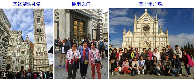 离开威尼斯又驅车265km来到佛罗伦斯(Florence),此处主要参观各种有名的教堂,对我们来说是比较生疏,跟随着导游到处拍照,有些名称还对不上号,可说是走马观花及雾里看花,看完后蒙查查!总的印象是意大利的建筑风格庄严精致,宏伟美观。
