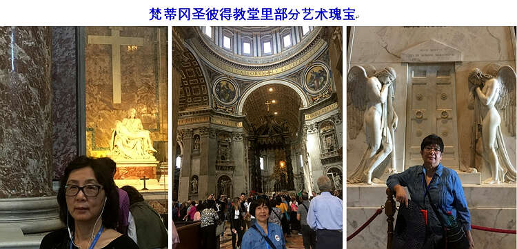 5-17-2018,今天是欧游的最后一天,游玩罗马古城。首先游独立小国梵蒂冈,梵蒂冈是世界上最小的国家,却有世界最大最豪华的天主教圣彼得教堂。1984年评为世界文化遗产。教堂里面各种高级艺术雕像繁多,走马观花都看不完,我们只能说是走过场而已。教堂外的建筑很宏观,广场上排列着许多凳子,据说可容纳6万朝圣者。