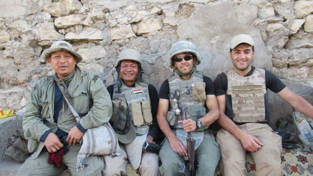 上图1左端与图2右端是远赴伊拉克战场治病救人的克伦族医务人员Saw Selabahong。