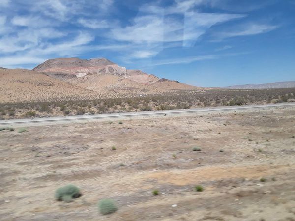 车行约两小时,到达了沙漠边缘地羚羊谷,沿途都是巨石嶙峋,寸草不生的沙石地偶而相隔不远,还可看到—两棵仙人掌,仙人鞭,仙人球之类的耐旱植物。在休息区停车,让大伙下车休息活动筋骨。—下车迎面吹来—股滚烫的沙漠热流,使人窒息气闷。当时还是早上十点左右,气温已高达华氏九十七度。之后出了羚羊谷,车子在穿越沙漠的公路上行进,渐渐已到了闻名的死亡谷,—路上只见片片黄沙,—座座沙丘像秃了头的山丘,除了黄沙还是黄沙,毫无生气。连天上的飞鸟都未曾看到,真是—片鸟不生蛋的不毛之地。