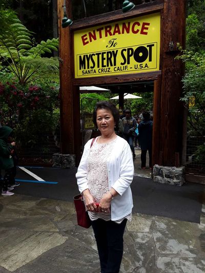 今日清晨,气候宜人,汽车飞驰在蜿蜒曲折的穿林公路上。此时天下着似雨非雨却是雾,使整片山林胧罩在朦胧的薄雾中,在晨阳照抚下,像雾里看花美极了,又像—群瑶池仙女蒙上—层薄纱,若隐若现,在风中漫妙起舞,微风中带来阵阵清新的松涛味,使人为之神清气爽。穿越林区,约在午前时分到达SantaCruz(Mystery Spot)此次旅游最后—个景点,园区内种满了各种奇花异草。然而最奇特还是半山坡的—间歪斜小木屋,我们分批跟着讲解员上去参观。小木屋是建在半山腰,要上去,非要爬—百多英尺,30多度陡坡。我们团里93岁高龄的谢师母,不用儿子搀扶,独自扶着扶手,竟然比我们这些“老青年,”还厉害,独自健步爬上钭坡,获得讲解员和我们后辈的称赞。站在歪斜的小木屋里,人有点晕晕的感觉,讲解员用木板搭了平台,用水平尺也打给大家看,木板两端是平的,在视觉上却有明显高低两端,在低端倒了杯水,水却往高端流,这可是造物者之神奇,也或许是人的错觉吧。参观完毕之后,上车马不停蹄地于晚上六点半回到洛杉矶,结束此次愉快的友谊之旅。