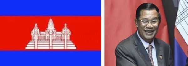 (左)柬埔寨王国国旗,(右)柬埔寨首相洪森