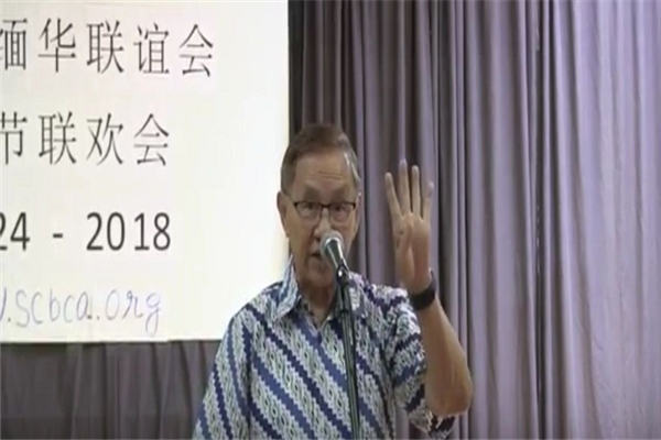 司仪宣布会长致辞,黄国胜会长给大家带来大好消息。缅华侨领曾子川先生,正在购买一幢楼房,准备给我们当会所用。厅堂面积大一倍,引起大众热烈鼓掌。