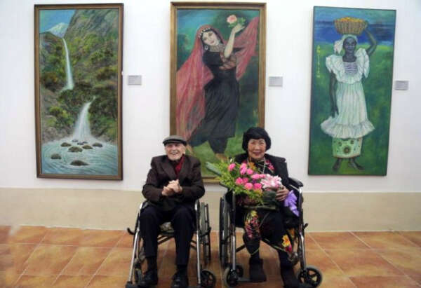 2014年11月12日郭南斯艺术馆揭幕式上,九旬高龄的郭南斯戴维斯夫妇俩激动地参加艺术馆揭幕仪式,感谢政府把她的艺术珍品留在了家乡——清远。