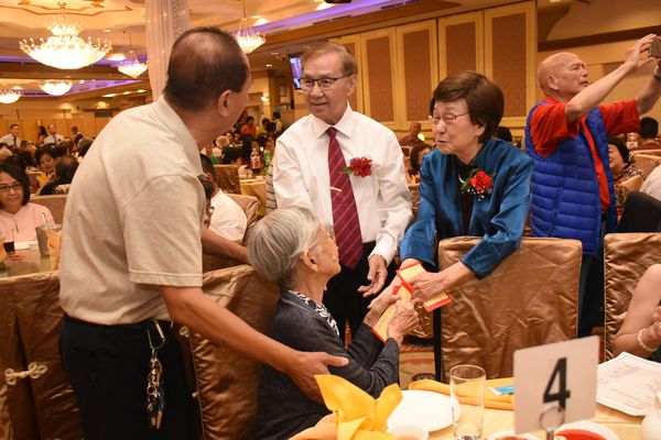 下午五点左右,高泰山贤伉俪忙着给来参加晚宴的嘉宾们校友们,朋友们拍照作纪念,让大家留下美好的回忆,是人生难得的相聚的镜头,也增加了宴会的气氛。