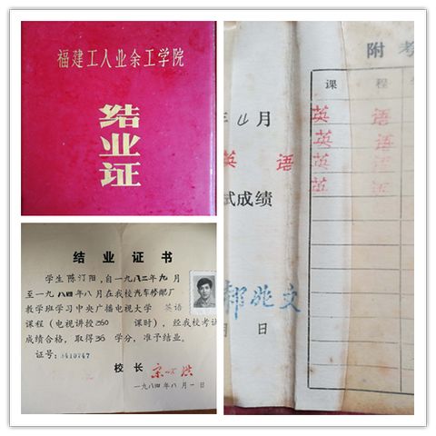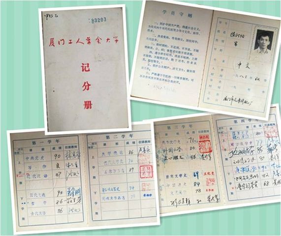 改革开放的春风吹遍祖国大江南北,我参加了1978年的恢复高考,虽有通知体检了,但没去走“后门”而名落孙山;不甘心落伍的我,1981年4月,报读福建工人业余工学院英语单科,1982年报读广播电视大学英语单科,均取得结业证书,充电成功。1983年,我报名参加成人高考,报考英语专业,总分虽离录取分数线还差几分,但语文83分,类似这种情况的“老三届”、“新三届”约30人,我们联名写信、打电报给教育部门、高招办,要求改录取在“中文专业”上学,电报内容是:“拯救我们这一代老三届吧!”“誓死夺回荒废的青春时光!”执着的追求终于被感动而获准,1983年秋,录取在教育部承认的厦门工人业余大学(以下简称业大)中文专业,终究成为“秋士”,搭晚班车上了大学。