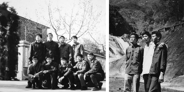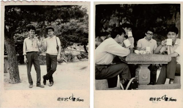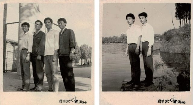 图左:和同学合影。 图右:左杨民政,中陈伯达,右谭炳辉
