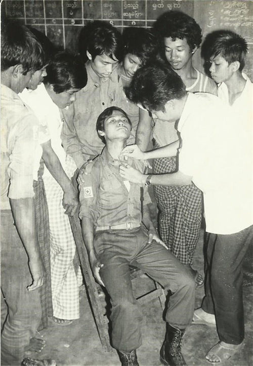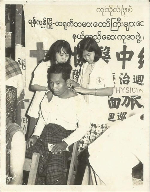 在勃生共义诊五天,每天从早上八点到下午五点。来看病的人各部门都挤满了人群,各种病症都有,这些中医师们和针灸医师们个个有条不紊,有秩序地给病人治疗。当地政府也派来红十字会的队员来诊所协助我们的治疗和帮助维持秩序。我们这一批中医师队员有一部份也被分配到军部去,帮军队治疗。
