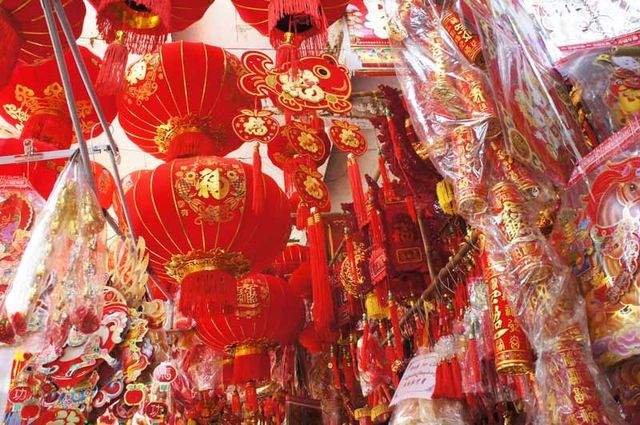 年关已近,唐人街街头春意盎然,走在街上,大部分是卖年货的商店及小贩,一路看去,街头街尾喜气洋洋挂着的过年物品颇招人眼球,需要什么年货,都能在这条街上买到。