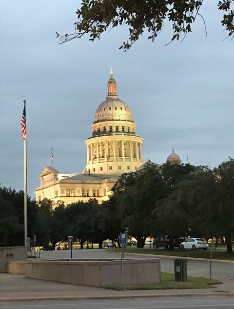 凝望着机窗㚈云海翻腾、余晖四射,心潮起伏跌宕之际,不知不觉,三个多小时过去了,飞机己缓缓下降,高空白云下只见郁郁葱葱、山峦起伏……城市样貌逐渐呈现于眼帘。这正是德州中心首府,美国南部一座美丽山城-奥丝汀(Austin)。