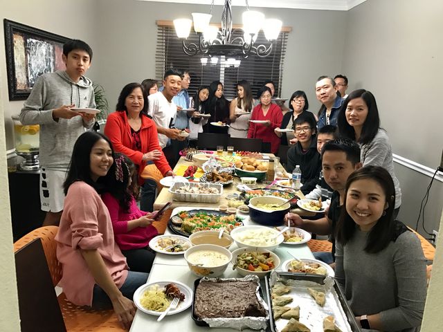 开心的是:我们还在奥丝汀渡过了快乐的感恩节,亲家是虔诚佛教徒,乐善好施、热情待客,在他们精心安排下,开了一个温馨热闹的节日Party,桌面上美味佳肴丰富,亲朋戚友欢聚一堂,共享火鸡盛宴;大家谈天说地,交流着生活中的种种经历和轶事奇闻,听者兴致盎然,屋里溢满着欢乐气氛,手机摄影留下现㘯的美好记忆,直至夜深,众人才余兴未尽逐渐离去。