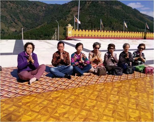 11月26日晨,参加华文文艺营会议后,笔者携夫人从曼德勒飞抵“黑荷”转机至景栋。至“黑荷”已11:15,出机场时,与从东枝赶来会面的景栋同班同学冯素华、罗英明同窗合影,匆忙至附近吃一碗面,即返回办理登机手续,与冯素华同行抵达景栋。