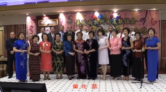 7-14-2018日晚,南加州南中校友会,在888酒楼隆重聚会,庆祝成立24周年。北加州南友会组团60人,前来助兴。仰光校友陈民昆夫妇,加拿大校友杨安从,外州洪士连,陈秀华夫妇等出席。校友们高唱校歌,情绪激昂,缅怀母校培育之恩,重现彼此手足深情。晚会结尾,我自告奋勇,以80岁高龄,粉墨登场,表演缅甸民间独舞"新时代弯腰老头"获得台下欢呼鼓掌。