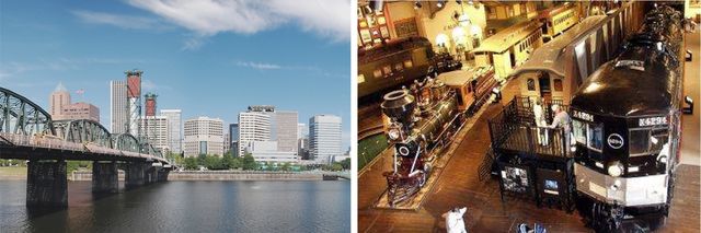 左:加州首府萨克拉门托河风光,右:加州首府萨克拉门托火车博物馆