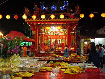 到大庙烧香拜佛是春节活动的重要内容,华人虔诚拜佛,绝不亚于其他民族,惟华人使用的年历,除观音佛诞外,佛诞圣节几乎都集中在春节期间。大年三十除夕夜,年长者大多在家里守岁,年轻人则选择到观音庙迎接新春来临,一群群瑞狮队、一簇簇少男少女,涌向观音庙,庙内庙外,拥挤着年青一代,只等吉祥时刻降临,献上一柱香,祈福世界太平、大众安康!