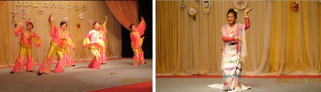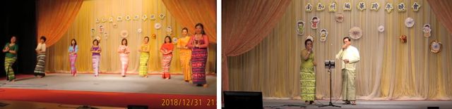 左:缅甸女生集体舞,右:缅甸男女生合唱