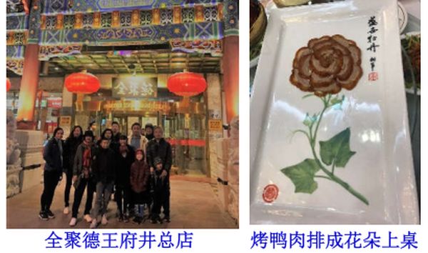 在北京,我们特地去了王府井的老字号全聚德品尝正宗的烤鸭,也去了最近才扬名的“海底捞”吃火锅,孙辈们对前门大街及同锣鼓巷的北京小吃异常钟爱。