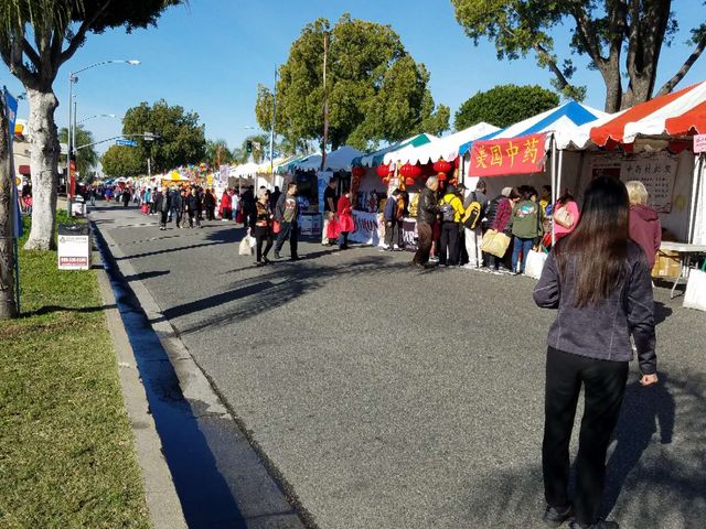 春节庙会,美国华人圈称其为春节嘉年华园游会。今年一月二十六、二十七两天,在蒙市市中心最繁华地段的嘉威大道,由华文世界日报社和蒙市市政府联合主办。参展厂商有二百余家,其热闹状况空前。舞龙、舞狮、歌舞表演,书、画展。现场写春联,锣鼓声,鞭炮声,歌舞表演的高音喇叭声震耳欲聋,卖服饰的,卖装饰品的,卖儿童玩具,卖中药材,卖电子产品……等等,五花八门,目不暇给。那边厢美食一条街,有台湾油炸臭豆腐,新疆的烤羊肉串,美式烤香肠,墨西哥烤玉米,东南亚风味的有新加坡,马来西亚,印度,印度尼西亚缅甸,中东等地区的美食,令人垂涎欲滴,各个美食摊位,食客大排长龙,以“民以食为天”这句话来形容此情此景真的一点都不为过。游客熙熙攘攘,有黄皮肤的,有黑、白、棕各色人种。园游会共举行了两天,华洋同乐,其庆佳节,盛况空前。