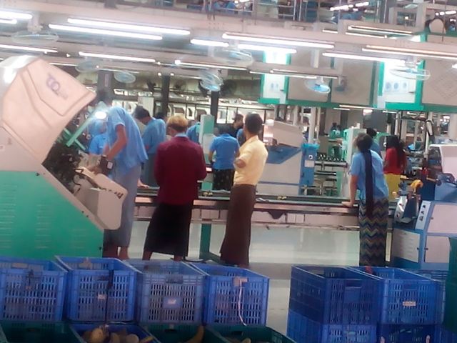在陶先生的陪同下,我到他们的车间去参观了一下,并与一两位工人交谈了一下。工人们似乎都是来自仰光市附近的农业县诸如坦达宾(Tantabin)、茂比(Hmawbi)一带及三角洲地区。他们那儿生活困难,大家都想往城市跑寻求出路。仰光市周边的工业区,就这样吸收了大批的“农民工”。而现在缅甸各出口行业中,“工业产品”出口已位居第一,遥遥领先位居第二的农产品出口(最后公布的6个月财政过渡期中,农产品出口量不到13亿美元,而工业产品出口则到达45亿美元以上)。在这方面,工业区的各工厂贡献不小,这一点是不能否认的。