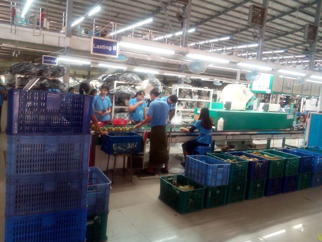 我是在两星期多前与陶先生约定要来参观他的工厂的。陶继尧先生在20多年前(为参加台湾的海外联招考试)曾在我这里补习过一些数理化课程,他当时还是东枝大学物理系的学生。1996年通过联招考试后赴台升学,一转眼20多年的时间过去了。今年1月18日,东枝东华学校的苏彩馨老师逝世,1月20日我前往吊唁时,与他不期然而相遇。见到他身着丧服,还感到一阵惊讶。他就跟我解释苏老师是他伯母,所以他前来奔丧。他现在在仰光投资建了一家制鞋工厂,请我有空到仰光时能顺便去参观之。我想正好可以近距离了解一下这几年来引起广大民众关注的仰光各工业区建设的情况,所以就高兴地答应了。