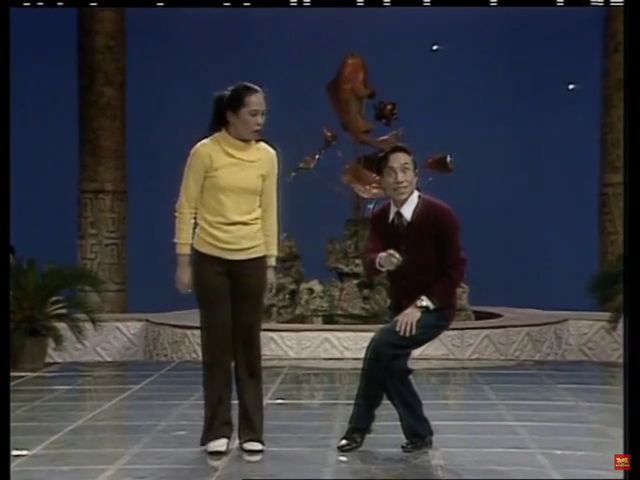 那时的舞台背景,灯光彩照,也已相当亮丽。台面底板棋盘方格,闪亮灯光,五彩斑斓,给笔者畄下深刻印象。