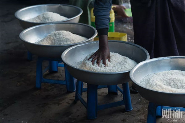 早晨,一位餐馆老板在淘米煮饭。老缅们吃的很简单,饭多菜少,很少有肉,一盘大米饭浇上一小勺蔬菜,加上辣椒、咖喱拿手拌一下就是一顿正餐。