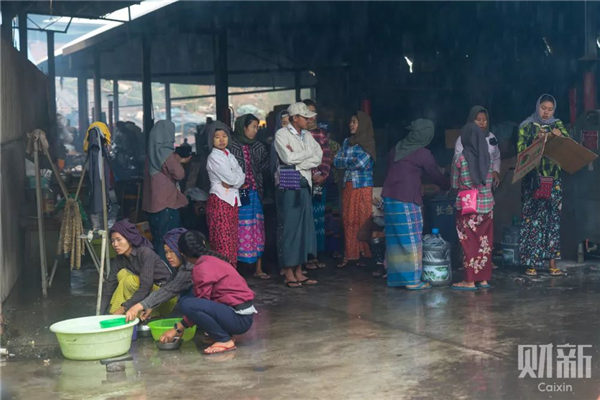 露天洗澡的“老缅”。市场上但凡有水龙头的地方,就是“老缅”的浴场。