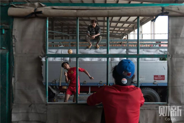 2019年2月23日,搬西瓜的“老缅”每天从早9点忙到晚9点,但这些20岁上下的年轻人一有空闲就在停车场里赤着脚踢起藤球,踢到汗透衣背都不肯停歇。