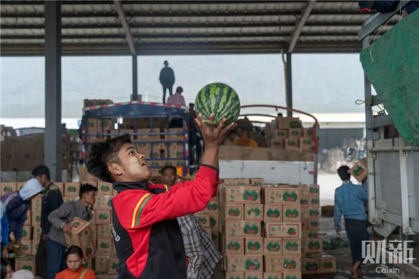 缅甸工人被他们的中国老板称为“老缅”。这个称呼没有歧视,表达的是一种老友式的亲切。西瓜易损,装卸时必须以人工逐一搬运,如若没有老缅,中国的老板们将多付出1倍以上的人力成本。