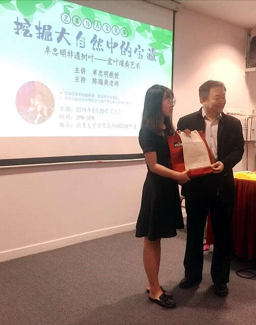 主持人Joyce宣布讲座的开始。拉曼大学副院长,"中华研究院主任"黄文斌博士作了热情洋溢的讲话,盛赞祖国的各方面迅速发展,积极开展非物质文化遗产的传承保护工作,感谢我们前来进行传统文化的交流,推广,并与我们互赠礼品,给我们三人分别颁发证书。