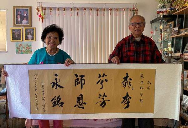 棒赛学生会特地请名书法家书写横扁相赠。表现了对老师的深度敬爱。师生离别半个世纪,古城重逢,心情激动万分,彼此倾吐心中的千言万语。席间洋溢着浓浓的亲情。
