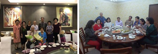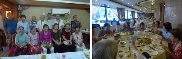 左:棒赛师生仰光聚会 右:应邀学生李耀中餐馆聚会