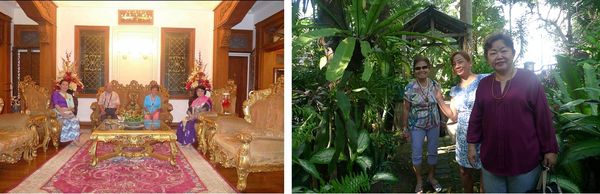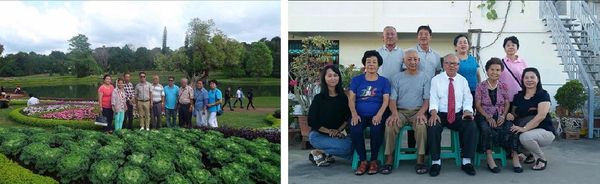 左:应邀探访学生尹丽珍豪宅 右: 参观学生明丽芬植物园