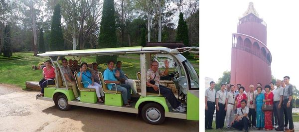次日上午,棒赛学生动用三部轿车,带我们夫妇北上眉苗市(丙乌仑)一日游。眉苗市距离曼德勒市不远,但地处掸邦高原边缘,两地地势高低相差悬殊。夏天,曼德勒炎热难熬,眉苗则凉爽宜人。早在英殖民统治时期,中缅甸英国高官纷纷前去避暑。当地受西方文化影响较深,有英文学校,教堂。由于我三嫂是眉苗人,结婚后三哥几十年从事种子生意,直至现在,每年往返濒繁。六十年代我在边界教书,多次路经,曾拜访三嫂的母亲,却没有去过当地著名的花园。此次同学们特地带我们去浏览。观赏五彩缤纷鲜花之余,意外地进入花园里的原古树木化石展厅,从未见过,大开眼界。