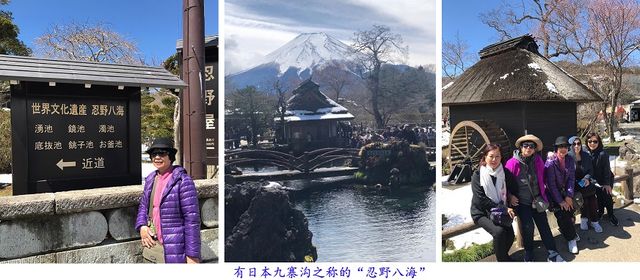忍野八海是日本山梨县忍野村的涌泉群。因为错落有致地散布着八个清泉, “忍野八海” 因而得名。八个清澈的泉水来自富士山融化的雪水, 2013年6月被收为世界文化遗产。有日本九寨沟之称,当然比不上我国四川九寨沟之美,因有富士山之衬托,它也有另类美丽。这里的许多村屋屋顶是用树皮削成细条如同禾秆草一样,别有一翻风情。
