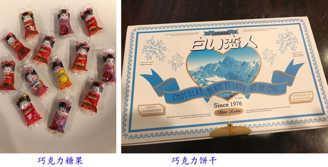 日本食品的制作手工很精致,市面上有各种各样的小麻薯,五颜六色,造型各异,煞是好看。我买了一些造型像日本女士的巧克力小糖果及白色恋人巧克力饼干给孙辈。