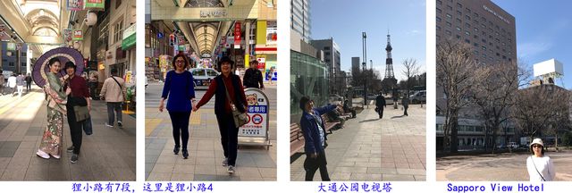 6) 狸小路商店街是札幌市相当著名的商业集中地,各种药妆店,服装店,食品店,鞋店,超市,甚至小赌注店都应有尽有。狸小路商店街已有百年历史,分为7个街区,长一公里,据说和我们所住旅馆旁的大通公园一样长,离我们所住的 Sapporo View Hotel 只隔几个街口。大通公园有个电视塔,白天看似一个铁架,晚上亮起灯光才有个模样。我们在狸小路买了本地驰名的特产“白色恋人”巧克力饼,只有北海道出售,本州那边都没有。