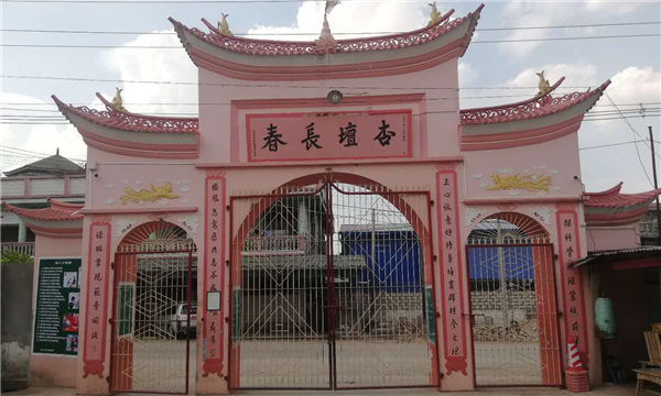 由正门步入,回望“院门”,正中的匾额上刻有“杏坛长春”,正门与侧门门柱上亦有楹联“正心诚意好修身培育群才参至理”“栖凤息鸾原共志养成六翯舞长空”、“探科学渊源紧追前辈”“讲纲常规范普谕后生”。