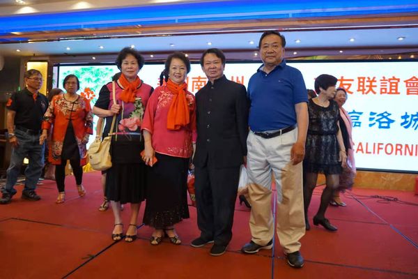 今晚大会的司仪是我们南友会主席林碧华校友亲自挂帅,名誉主席黎天宝校友共同主持今天的庆典晚会。晚会开始,首先是全体理、干事上台,由江丽春老师指挥,全体校友高唱校歌。主席林碧华致欢迎词,中、缅两国驻洛杉矶领事,分别上台发表讲话祝贺大会成功召开。王锦伦校友主持敬师活动,并向每位恩师发送红包一封,祝老师们健康长寿。