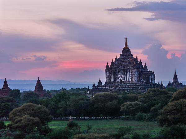 我们住的宾馆,在伊洛瓦底江畔,也在蒲甘风景区的中心。放眼望去,座座佛塔,密布如林,高低错落。