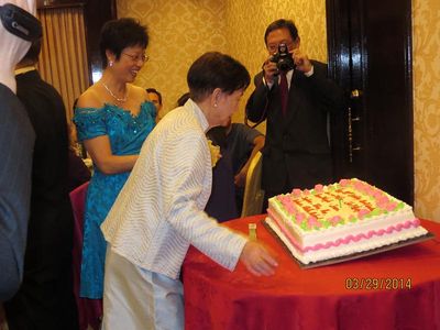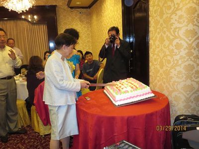 谭月英学姐当晚穿上一套银色套装,配上一头短发,在耄耋之年散发出一股青春优雅的气息,再加上她本人一贯的温,良,恭,俭,让,雅致有礼的作风,不由得让人敬佩羡仰。她像只灵活的小鸟活跃于全场与客人寒暄,一点也看不出已是八十年华的人。