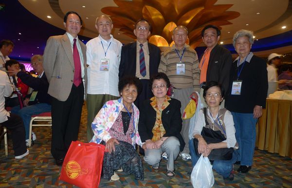 澳门五届同侨大会(2009)前排左起黄月琴,杜美玲,后排左起张元兴,黄柏濂,洪士连,苏顺路,林华明,林抱治