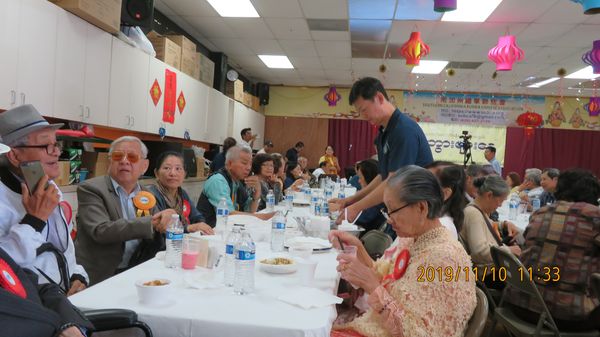 长米粉,长寿面,暖寿甜品,凉拌茶叶苦后甘,端着一盘盘敬老福食,品香四溢的年青志愿服务员,脸带笑容必躬必敬地一盘盘一碟碟摆在爷爷们的面前,一百余位红颜皓发如了因般的老人,那笑容那尊崇的表现,比起丰盛的食品更为享受。他们是祖先美德优良传统的承继者,弘扬者,他们是我族的希望,了因们看到海外族群的无限光辉的明天。